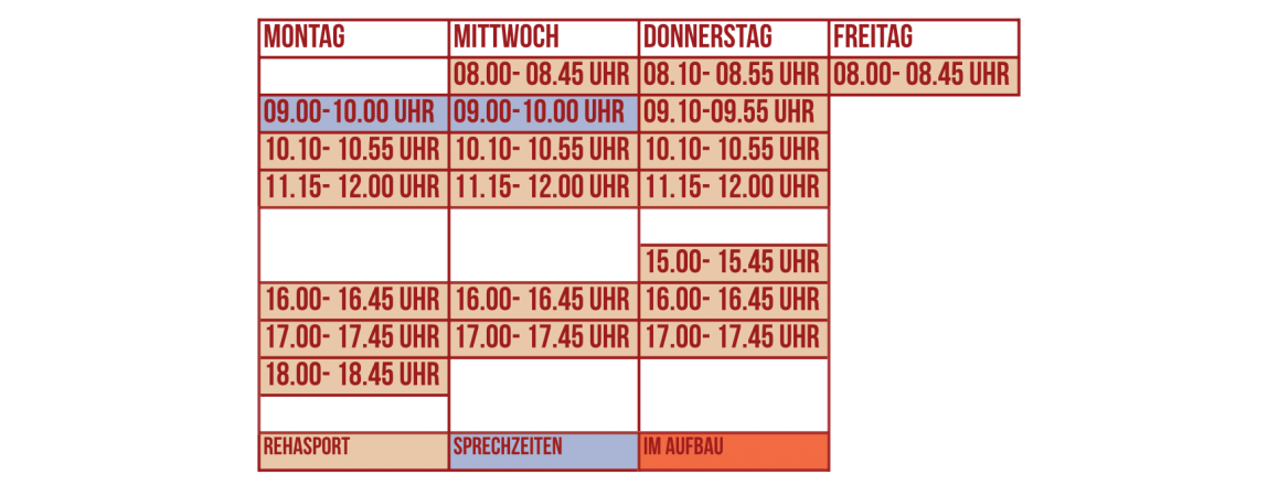 Grundvoraussetzung ist eine gültige Rehasportverordnung und die regelmäßige Teilnahme am Rehasport bei uns.